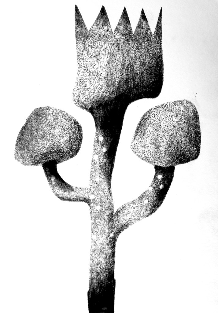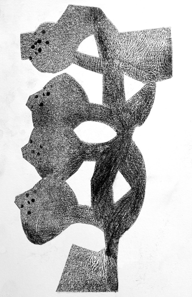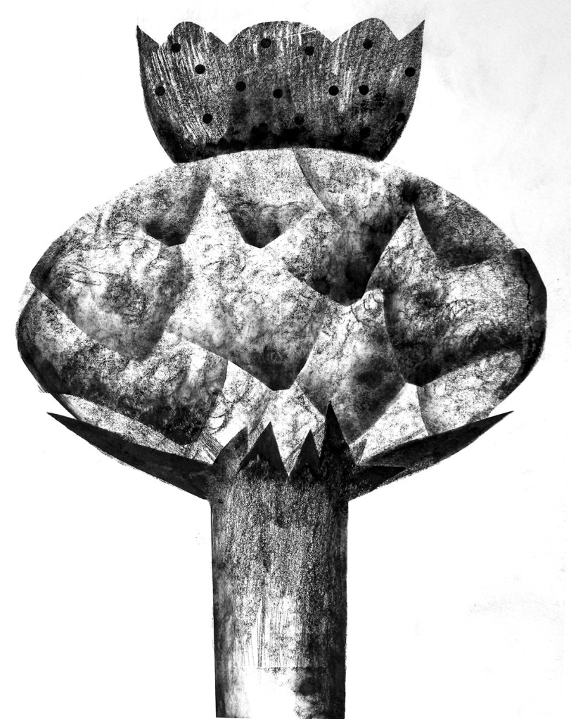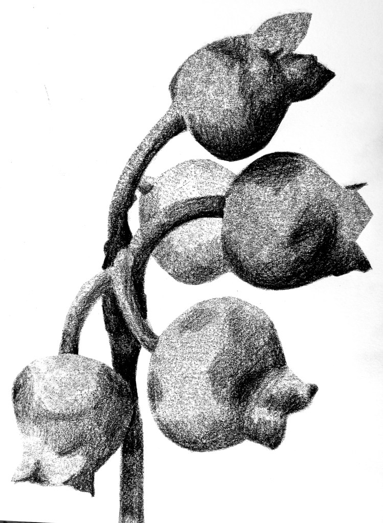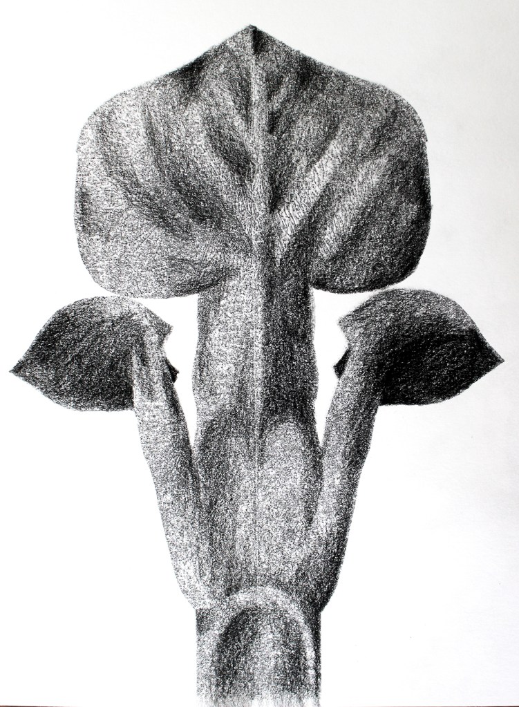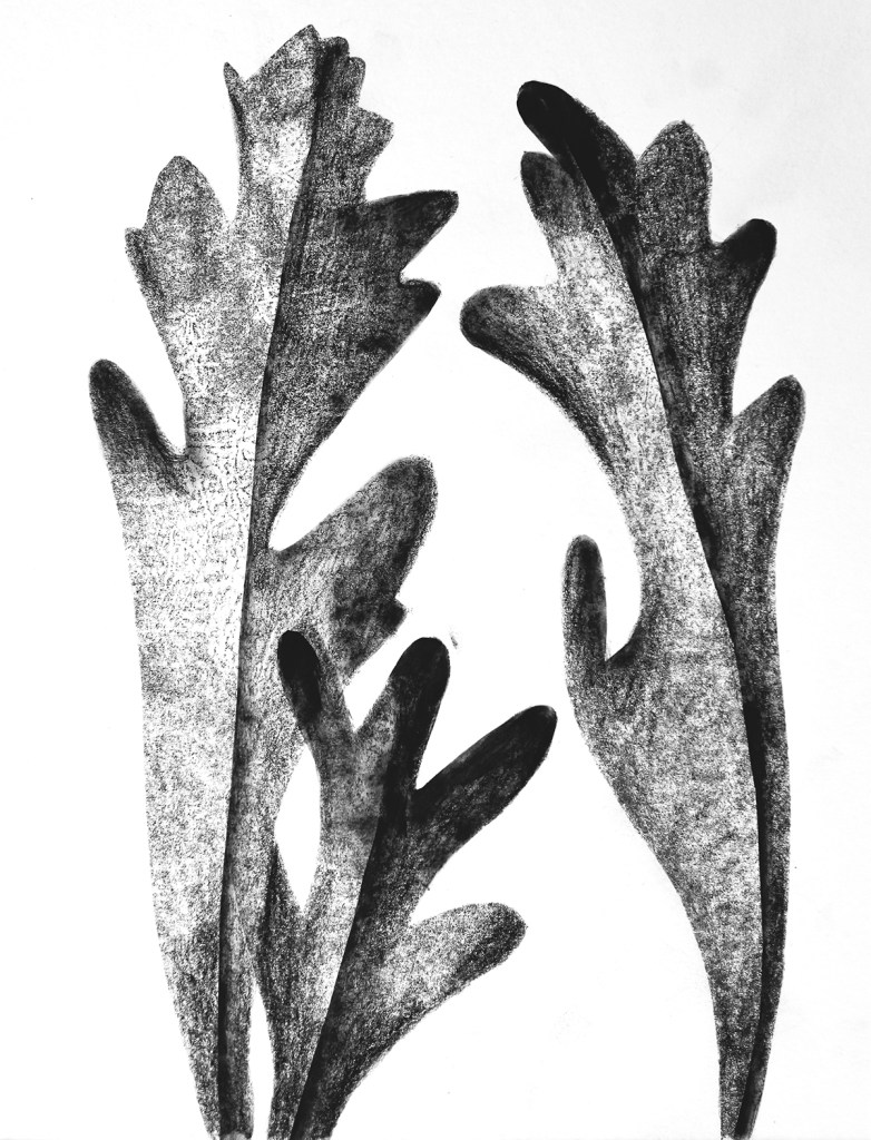 2026: Working with carbon transfer paper, with addition of pencil and stencilling, I worked on a series of drawings inspired by botanic photography of Karl Blossfeldt.