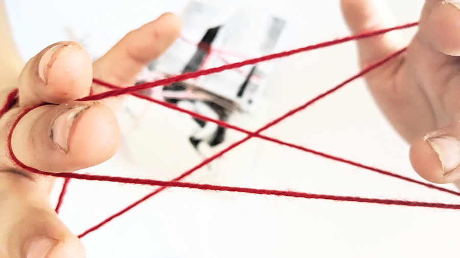 - a loop of red string long enough to play cat’s cradle