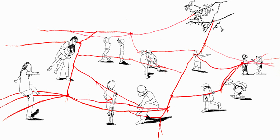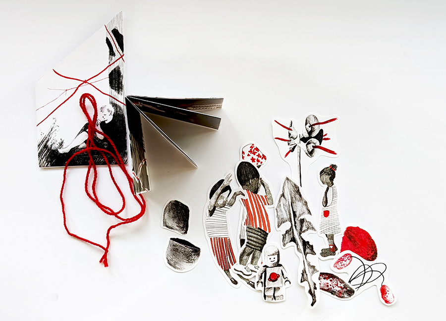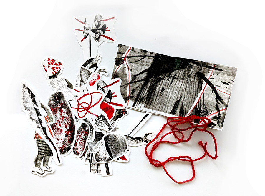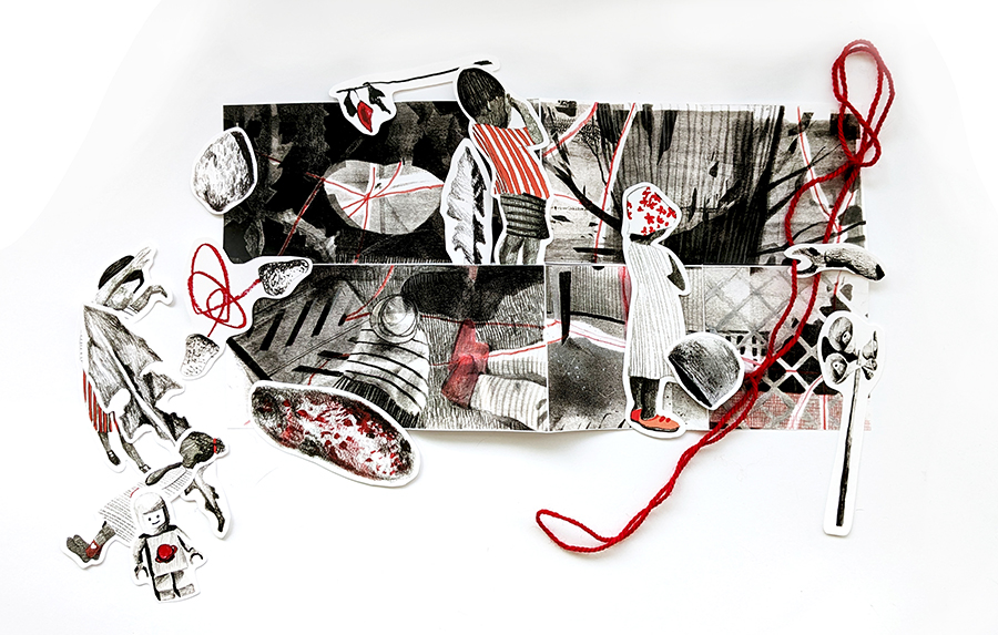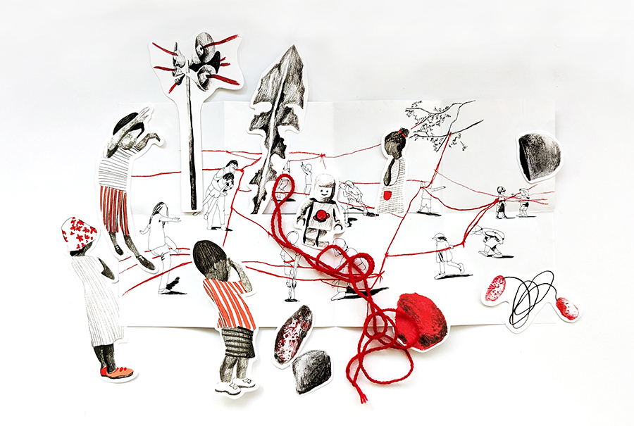 The entanglement game intention: in the folding/ unfolding/ enfolding of the zine, the movement of child figures, the twisting of string, the storying of lived experiences of former students through the current/ future ones, I think of Bradotti’s (2019) and Barad’s (2007) works on the relational dynamic production of new knowledges/materializations that takes place in the re/working of specification and actualization, of past and virtual futures.