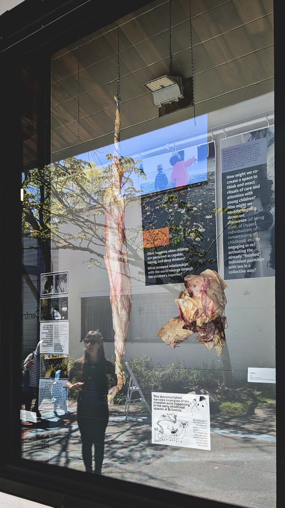 The installation is comprised of select pieces from ongoing pedagogical documentation, offering glimpses of the complex work happening in the early childhood spaces at Britannia. Throughout the year, young children and educators, supported by ECPN pedagogist Megan MacDonald and Capilano University atelierista Tatiana Zakharova-Goodman, took up questions of abilities, care, roots, and rituals, exploring them thorough conversations, drawings, sculpting, and movement. We invite you to pay attention to the theories, stories and ideas that emerged as the children and early childhood educators worked together to think more deeply about their world.
