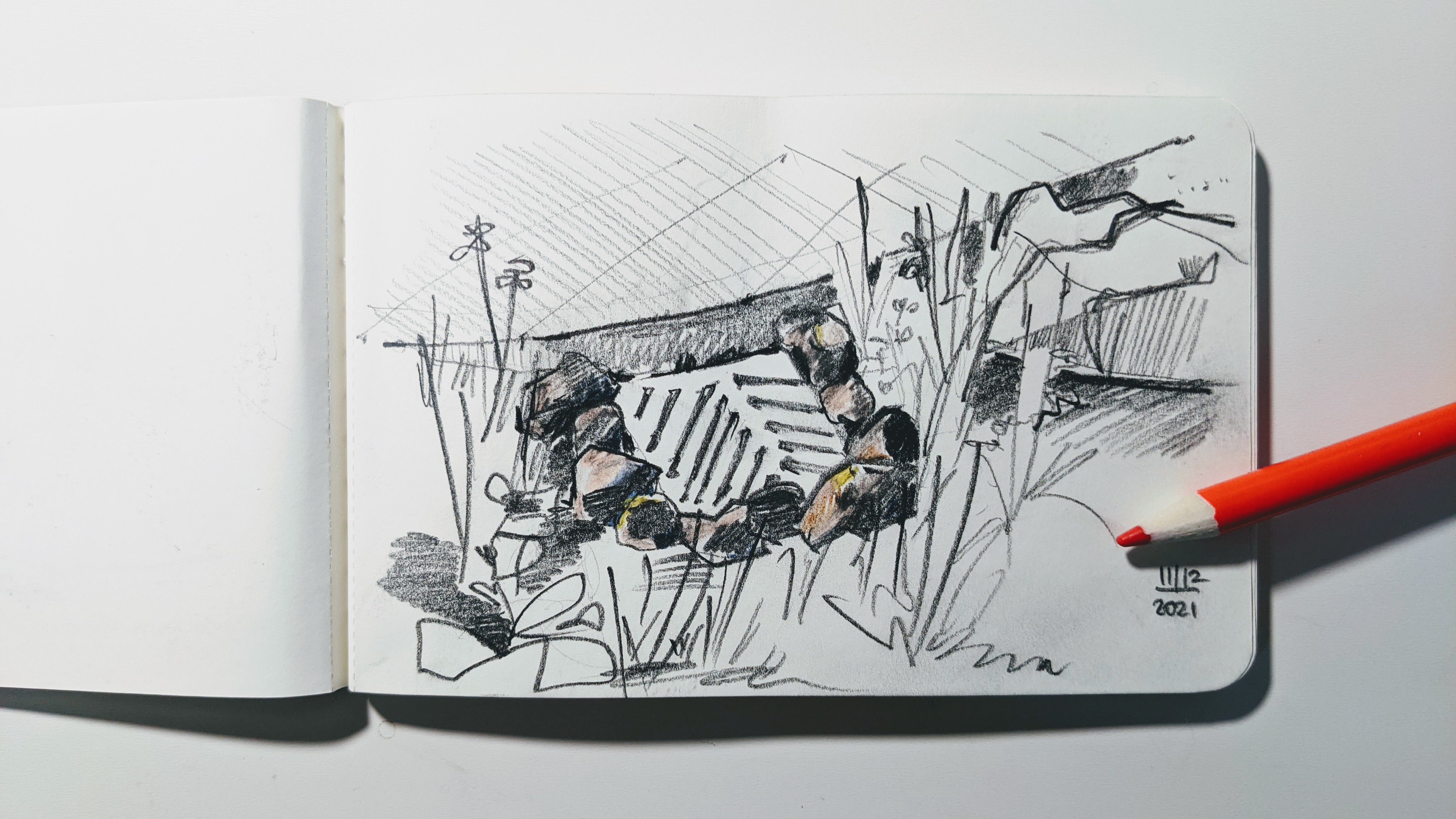 Thinking with Ingold, I propose that sketches, just like hand-written notes of text, are a build-up of small pencil lines, an amassing of noticings. Both are practices of mark-making, already familiar, already full of possibilities for thinking. This way, sketching stops being a forbidding act requiring a specialized artistic talent.