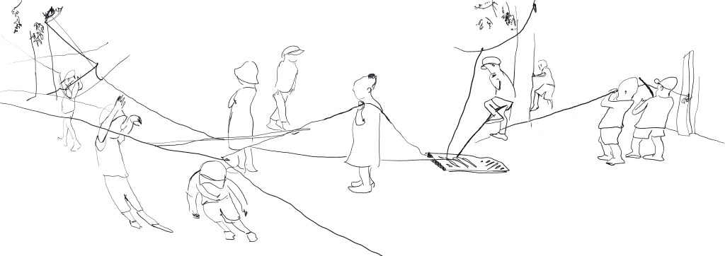 Sketching, as one of the methods of collecting traces and engaging in pedagogical narration, is a kind of dance between multiple partners: that which pulls our attention, the eye, the gripping hand and fingers, and the materials that support the drawings.